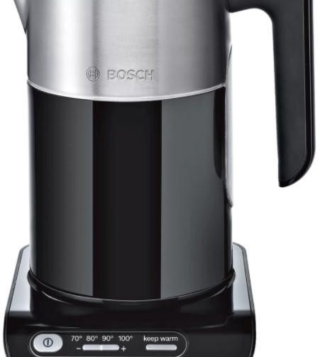 Чайник Bosch TWK8613P выполнен с наличием системы Temperature Control, благодаря которой Вы можете установить желаемую температуру нагрева воды в режимах 70, 80, 90 градусов, а также максимальную температуру кипения 100 градусов. Заданное значение можно изменять в процессе нагрева.