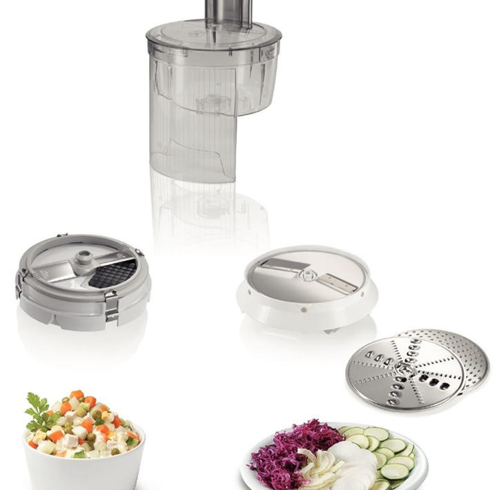 Благодаря механизму Easy Arm Lift менять насадки особенно легко: многофункциональный рычаг, на который они крепятся, приводится в движение простым нажатием кнопки. Ещё одна интересная особенность этой модели — 3D планетарное вращение насадок при замешивании теста. Крюк и венчики вращаются не просто вокруг своей оси, а по планетарному принципу, благодаря чему перемешивание происходит более равномерно и по всему объему рабочей чаши. Это позволяется избежать налипания ингредиентов на стенках.