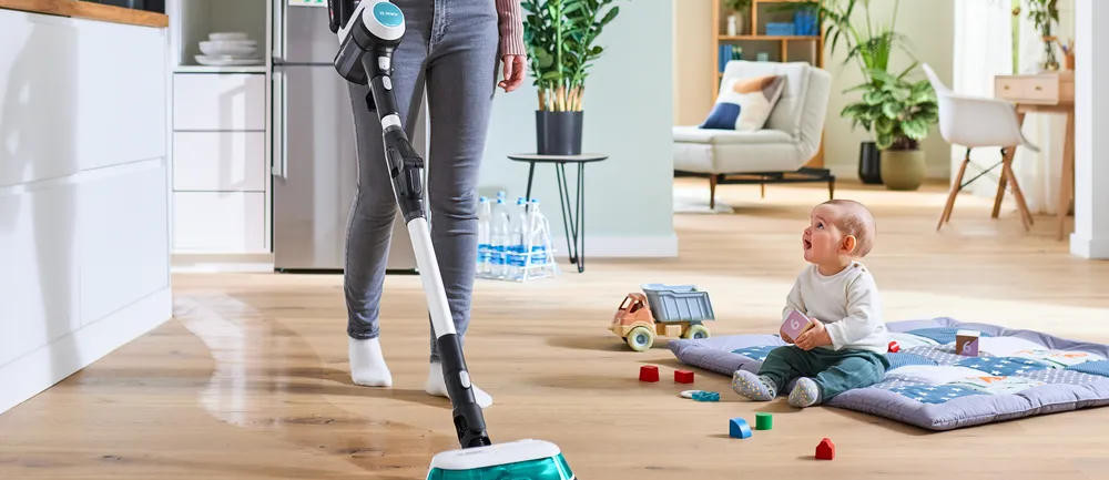 Для обеспечения эффективной уборки пылесос оснащен системой RotationClean и электрощеткой/турбощеткой. Легкая очистка щетки Easy Clean обеспечивает долгий срок службы устройства. Пылесос работает от аккумулятора, время работы которого составляет 40 минут. Время подзарядки аккумулятора составляет 5 часов. Индикатор уровня зарядки аккумулятора позволяет контролировать процесс зарядки.