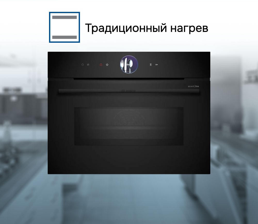 Особенностью духового шкафа Bosch CMG936AB1S является функция 4D-горячего воздуха, которая обеспечивает равномерное распределение тепла по всему объему печи. Режим горячего воздуха Gentle обеспечивает бережное приготовление блюд, сохраняя все витамины и полезные свойства продуктов. Верхний и нижний жар, верхний и нижний жар ECO, большой и малый гриль, гриль с конвекцией и термогриль, режим для пиццы и нижний жар - все эти функции делают этот прибор незаменимым помощником на кухне. Дополнительные функции, такие как подогрев посуды, поддержание температуры, функция Air Fry для приготовления блюд без добавления масла, размораживание и микроволновая печь с 5 уровнями мощности, делают этот духовой шкаф максимально универсальным. Автоматический быстрый разогрев позволяет сократить время приготовления блюд, а внутреннее освещение LED обеспечивает отличную видимость внутри печи.