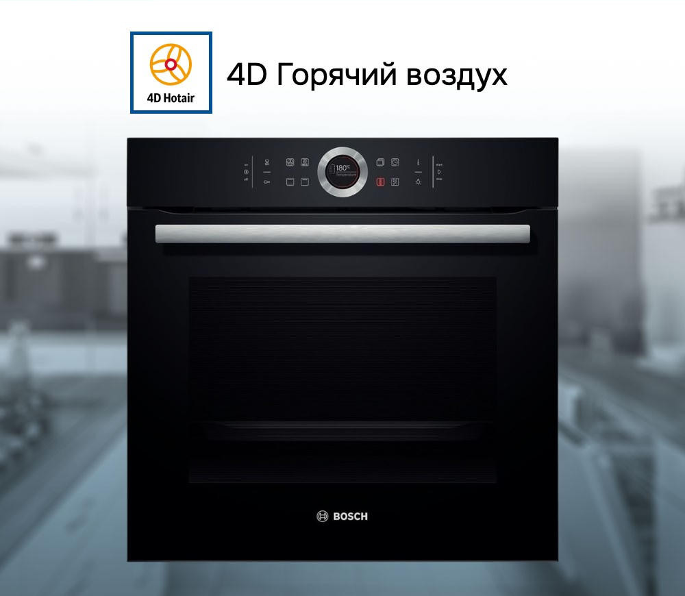 Бош HBG634BB1 оборудована 13 режимами нагрева, диапазон температур составляет от 30 до 300 _C. Выбрать нужный будет очень легко, потому что панель оснащена переключателем ControlRing и интерактивным TFT-дисплеем.