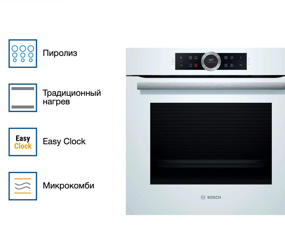 Духовой шкаф Bosch HBG675BW1 — это электрическая независимая модель из линейки Serie | 8. Ее внутренний объем составляет 71 литр, благодаря чему есть возможность запекать большие блюда. Она оформлена в белом цвете, благодаря чему отлично впишется в любой современный кухонный интерьер — например, в стиле хай-тек. Управление осуществляется посредством использования сенсорных кнопок и Control Ring.