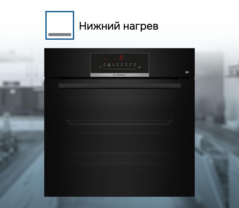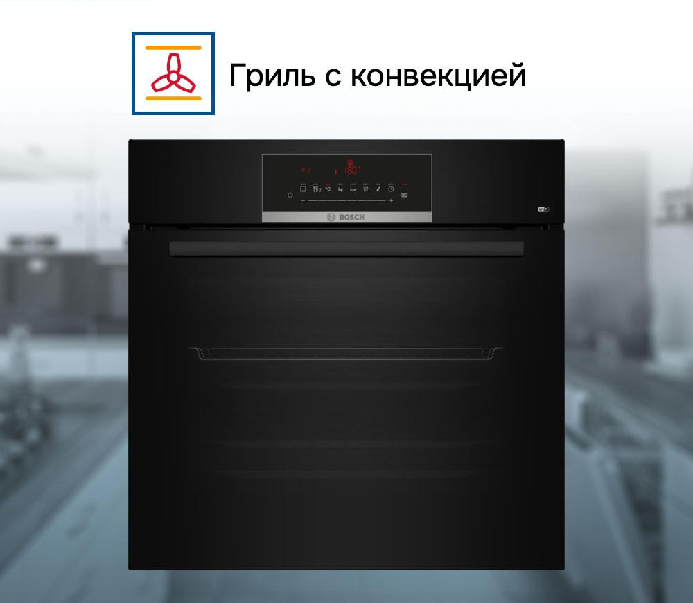 Электрический духовой шкаф Bosch HBJ559YB6R из серии Serie | 6 — это идеальное сочетание стильного дизайна и современных технологий. Устройство выполнено в привлекательном черном цвете, что позволяет ему гармонично вписаться в любой интерьер кухни. Сенсорное управление и LCD-дисплей делают использование духового шкафа удобным и интуитивно понятным. Особенностью данной модели является наличие многофункциональных часов Easy Clock и таймера, что позволяет точно контролировать время приготовления блюд. Кроме того, духовой шкаф оснащен функцией Home Connect, позволяющей управлять устройством дистанционно с помощью смартфона или планшета. Электрический духовой шкаф Bosch HBJ559YB6R предлагает 12 режимов нагрева, включая 3D-горячий воздух, верхний/нижний жар, большой гриль, гриль с конвекцией и режим для пиццы. Такое разнообразие режимов позволяет готовить любые блюда, сохраняя их вкус и полезные свойства. Устройство также оснащено системой автоматического приготовления AutoPilot, которая включает в себя 40 автоматических программ. Это значит, что вам не придется заботиться о выборе температуры и времени приготовления — духовой шкаф сделает все за вас. Очистка духового шкафа не вызовет у вас никаких проблем благодаря системе EcoClean. Экологичные панели EcoClean, расположенные на задней, боковых стенках и потолке, обеспечивают эффективное и долговечное очищение. При использовании духового шкафа вас порадует его безопасность. Дверца устройства оснащена амортизатором SoftClose, что предотвращает ее резкое закрывание. Также есть блокировка от детей, предотвращающая случайное включение прибора.