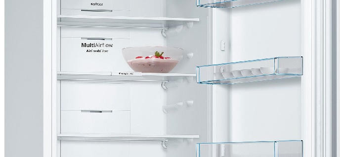 Холодильная камера модели оснащена 4 полками из ударопрочного стекла: две из них зафиксированы, две другие можно перемещать по высоте. Загружать и доставать продукты гораздо удобнее благодаря выдвижным полкам EasyAccess. Ящик VitaFresh сохраняет свежесть продуктов до 3 раз дольше, поддерживая наиболее оптимальную температуру и уровень влажности. На двери расположены 3 полки, на которых есть металлические аппликации. Свежесть обеспечивает угольный фильтр AirFresh, абсорбирующий неприятные запахи и нейтрализующий действие бактерий.