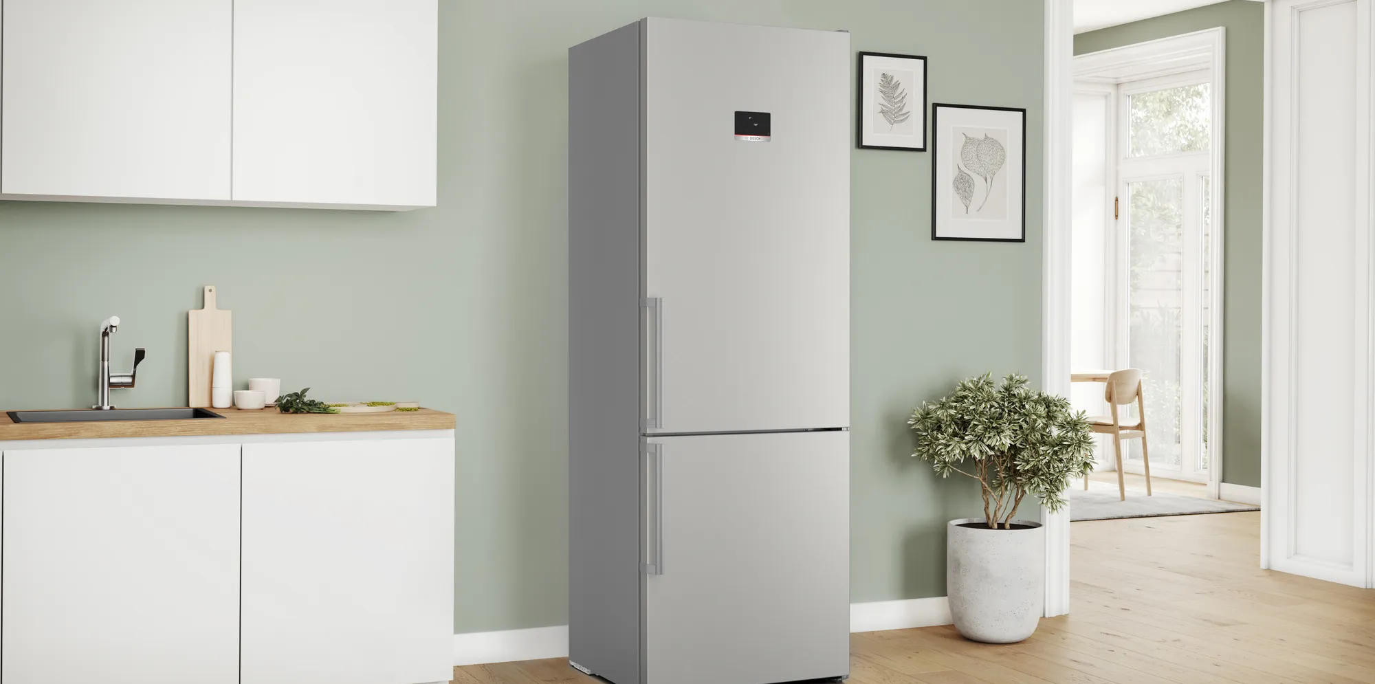 Двухкамерный холодильник Bosch KGN49AIBT — это превосходный выбор для тех, кто ценит качество, надежность и функциональность. Произведенный в Евросоюзе, он обеспечивает высокий уровень производительности и долговечность, подтвержденную гарантией на 12 месяцев. Стильный и современный дизайн холодильника выполнен в цвете нержавеющей стали, что делает его идеальным дополнением к любому интерьеру. Особенностью является обработка против отпечатков пальцев, благодаря которой поверхность всегда остается чистой и аккуратной. Управление холодильником осуществляется при помощи сенсорных элементов и электронного дисплея, что обеспечивает удобство и простоту использования. Система охлаждения No Frost и автоматическое размораживание обеспечивают оптимальные условия для сохранения свежести продуктов. С общим полезным объемом в 440 литров, в том числе 311 литров в холодильной камере и 129 литров в морозильной, этот холодильник предоставляет достаточно места для хранения большого количества продуктов. Внутри холодильника есть 5 полок, из которых 3 регулируемые и 2 фиксированные, а также специальная полка для бутылок и 4 полки на дверце. Все полки изготовлены из высокопрочного стекла, что обеспечивает их долговечность и надежность. Особое внимание заслуживает зона свежести VitaFresh, которая создает идеальные условия для хранения овощей, фруктов и мясных продуктов. В морозильной камере предусмотрены 3 ящика для замороженных продуктов и функция суперзамораживание SuperFreezing, позволяющая быстро заморозить большое количество продуктов.