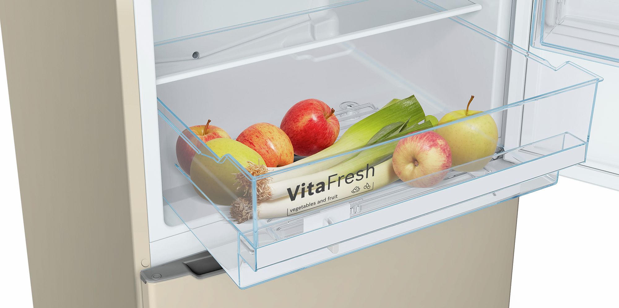 Двухкамерный холодильник Bosch KGV36XK2A бежевого цвета с нижней морозильной камерой — удобная экономичная модель, которая относится к классу эффективности А+. Благодаря системе охлаждения LowFrost образование льда в морозильной камере минимальное. Технология NatureCool поддерживает в холодильнике оптимальную влажность, что позволяет надолго сохранить свежесть овощей и фруктов.