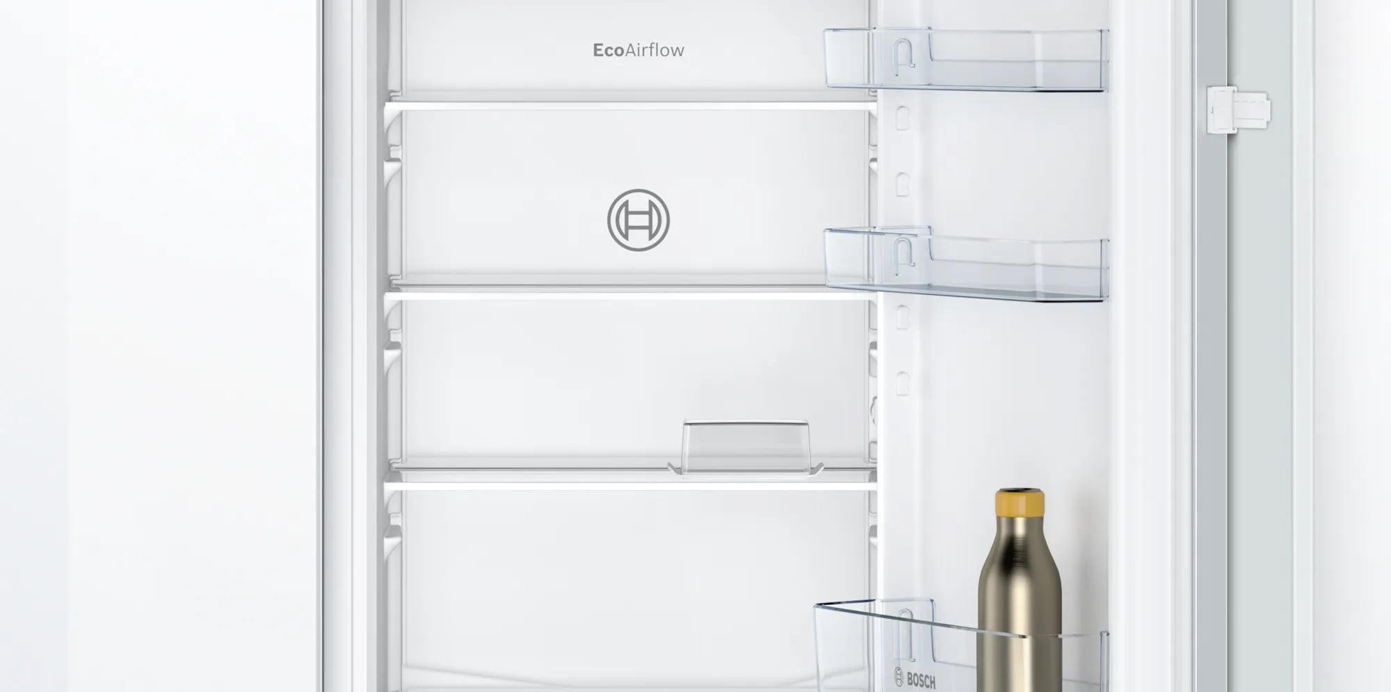 Двухкамерный холодильник Bosch KIV 865 SF0 - встраиваемая модель с ящиком для овощей и фруктов MultiBox. Благодаря циркуляции EcoAirflow поддерживается постоянная температура по всей холодильной камере. Система охлаждения LowFrost уменьшает обледенение морозильной камеры, излишняя влага отводится наружу через специальное отверстие.