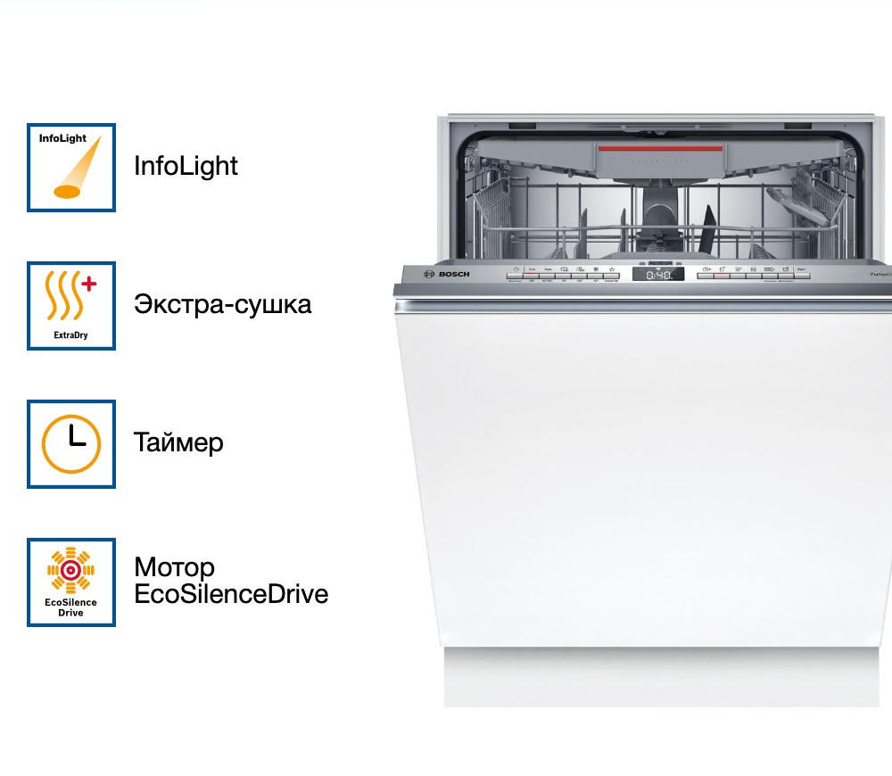 Встраиваемая посудомоечная машина Bosch SMV6ZCX00E выделяется своим лаконичным и утонченным внешним видом, который идеально вписывается в любую кухонную обстановку. Скрытая установка позволяет интегрировать устройство в гарнитур, сохраняя целостность интерьера. Благодаря элегантной цветовой гамме, машина гармонично сочетается с другими элементами кухни, не привлекая лишнего внимания.