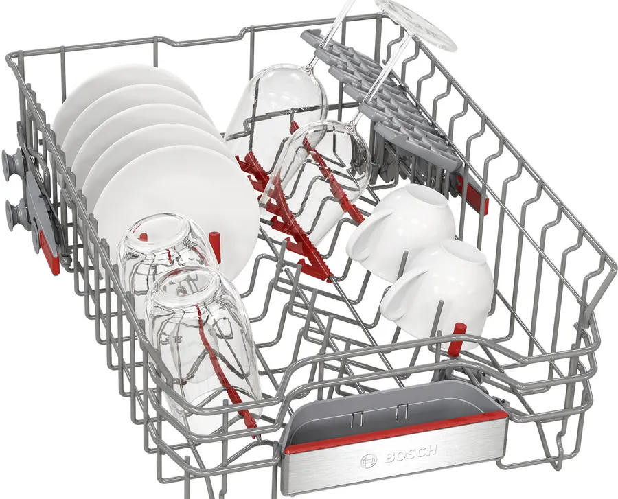 Встраиваемая посудомоечная машина Bosch SPV8ZMX06Q обладает сдержанными линиями и панелью из нержавеющей стали, которая гармонично встраивается в мебельный гарнитур и придаёт кухонному пространству аккуратный, современный вид. Узкая конструкция рассчитана на ограниченное пространство, при этом сохраняет функциональную вместимость на десять стандартных комплектов, что делает модель отличным решением для малых и средних семей. Внутренняя камера выполнена из сочетания нержавеющей стали и прочного пластика, обеспечивая долговечность при интенсивной эксплуатации; производитель подтверждает защиту от сквозной коррозии сроком в десять лет, а стандартная гарантия составляется двенадцать месяцев.