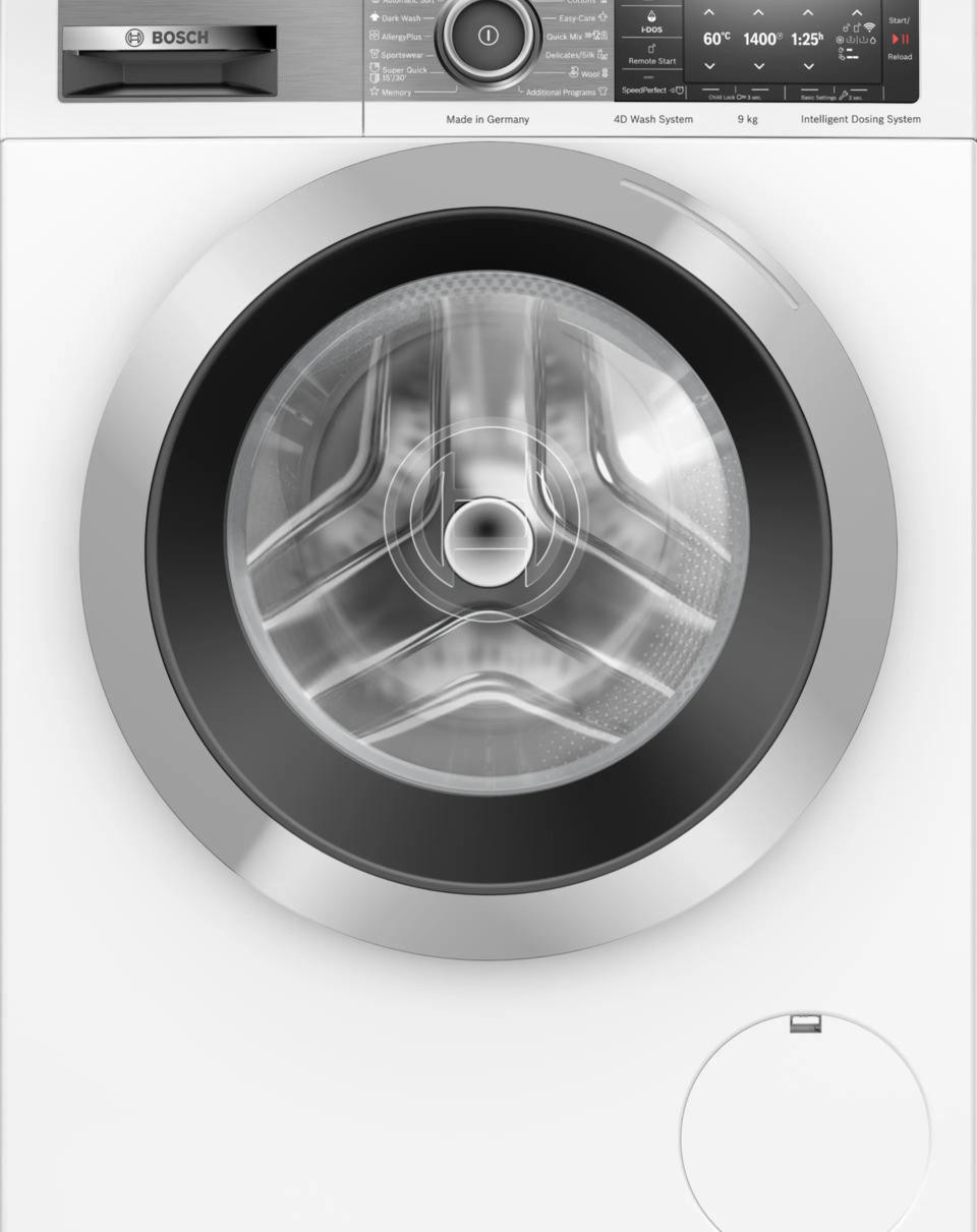 Стирально-сушильная машина Bosch WAV28EH0BY оснащена программой Home connect, вы можете управлять устройством с помощью смартфона отдаленно. Имеется автоматическая программа, которая подбирает настройки от типа ткани и степени загрязнения. AntiStain Plus удаляет такие пятна, как красное вино или травы.