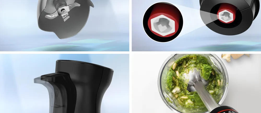 Устройство обладает эргономичной ручкой, которая обеспечивает удобный захват и уверенное управление. Бесступенчатая регулировка скорости позволяет выбирать оптимальный режим для каждого типа продуктов. Импульсный режим обеспечивает мощное и быстрое измельчение даже самых твердых продуктов. В комплекте с блендером поставляется мерный стакан, венчик для взбивания, вакуумный насос, вакуумный контейнер объемом 1.2 литра и вакуумные пакеты с замком. Все детали, подлежащие снятию, можно легко и быстро очистить в посудомоечной машине. Мощность блендера составляет 1000 Вт, что обеспечивает эффективное и быстрое измельчение продуктов.