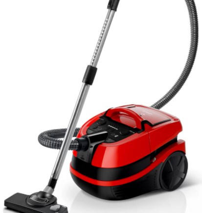В стандартный набор этого пылесоса входят универсальная щётка, подходящая большинству поверхностей, малая, мягкая (для чистки мебели и жалюзи) и щелевая для труднодоступных мест. Кроме того, в комплекте есть турбощётка, насадка для матрасов, а также несколько распылительных для мойки. Внутри есть встроенный отсек для насадок, чтобы их было удобнее хранить. Кабель имеет радиус действия в 12 м. Прорезиненные колёсики легко скользят по поверхности и не оставляют следов на ковре.