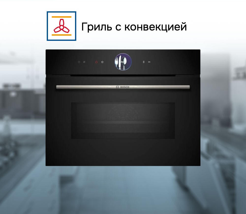Электрический духовой шкаф Bosch CMG7361B1 - это независимый прибор с внутренним объемом 45 литров, который сочетает в себе элегантный дизайн и функциональность. С его помощью можно приготовить разнообразные блюда, благодаря многочисленным режимам нагрева и автоматическим программам. Устройство имеет стильный черный цвет, который гармонично впишется в любой интерьер. Управление осуществляется электронно с помощью переключателя Control Ring. На 2.5-дюймовом цветном TFT-дисплее с сенсорными кнопками отображается вся необходимая информация о процессе приготовления, а также время на электронных часах.