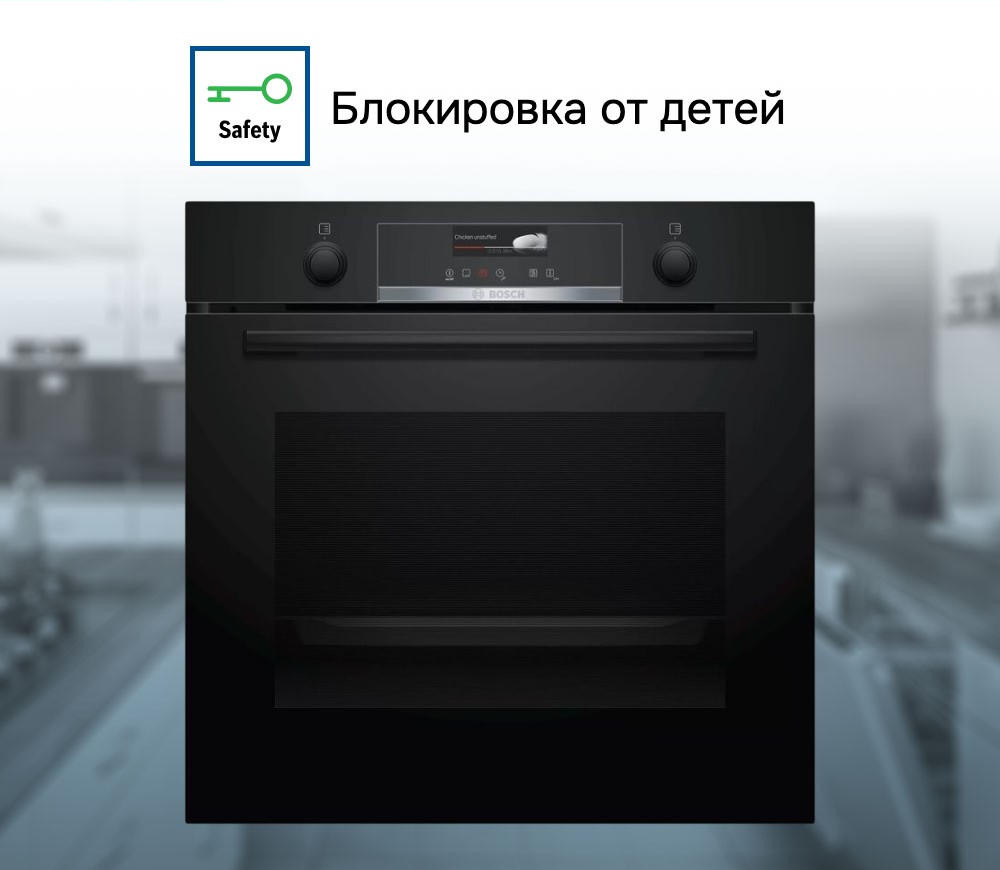 Духовой шкаф Bosch HBG539EB0 выполнен в цвете нержавеющей стали и оснащён серебристой фурнитурой. Элементы управления — утапливаемые поворотные ручки и сенсорные кнопки. Камеру освещает одна галогенная лампа мощностью 25 Вт. Уровней установки противней — пять. Амортизатор SoftClose позволяет мягко закрывать дверцу. Наружное стекло греется не более чем до 50°С. Предусмотрена блокировка от детей. Модель комплектуется двумя противнями (универсальным и эмалированным) и комбинированной решёткой.