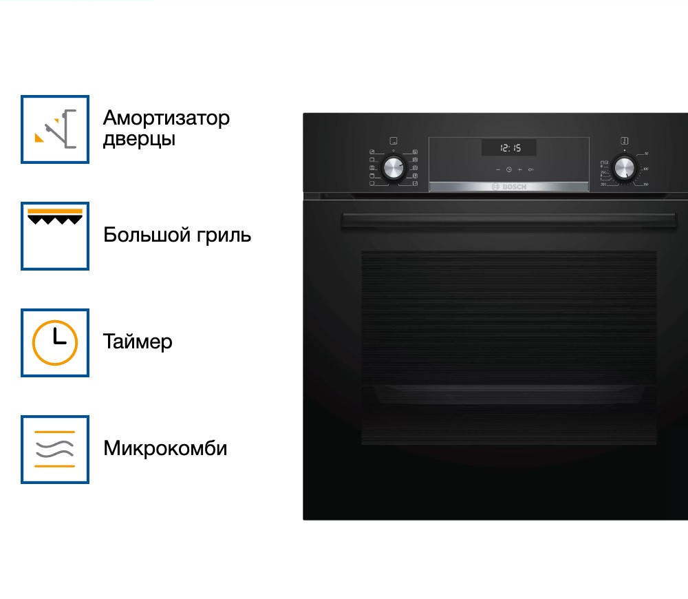 Духовой шкаф BOSCH HBJ558YB0Q относится к типу электрических. Он выпущен в линейке Serie 6, которая отличается дополнительными удобными функциями и интересными технологическими решениями, а также безопасностью. Например, благодаря тройному остеклению температура фасада не превышает 40 градусов.