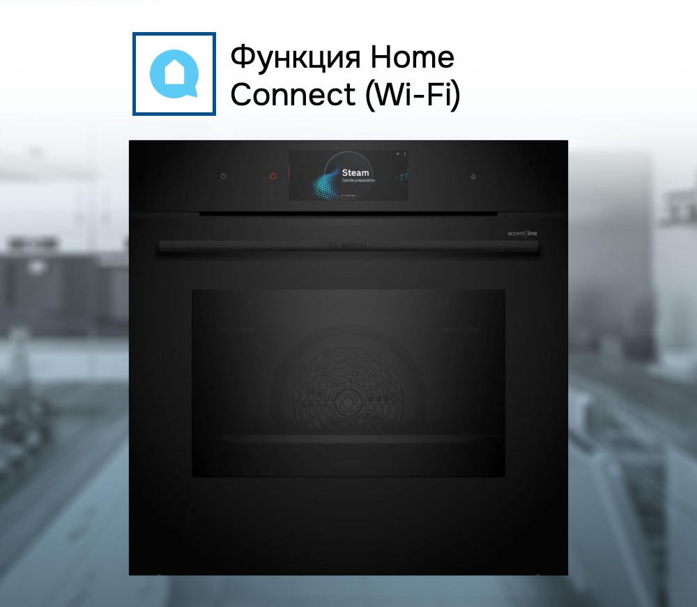 Всё управление — через сенсоры и яркий цветной экран, на котором чётко видно время, режим и температуру. Не нужно листать инструкцию: духовка интуитивно понятна с первого касания. А если вы в другой комнате или уже в пути домой — легко запустить разогрев или проверить стадию готовки через приложение Home Connect. Это не «умная игрушка», а реальное удобство, которое экономит время и нервы.