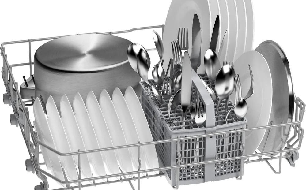 Посудомоечная машина Bosch SMS26DW00T представляет собой полноразмерное, отдельностоящее устройство белого цвета. Модель оснащена инновационным инверторным двигателем EcoSilence Drive, который обеспечивает тихую и эффективную работу. Способность уместить до 13 комплектов посуды делает эту модель идеальной для больших семей или вечеринок. Машина предлагает шесть стандартных программ и пять температурных режимов, включая два вида быстрой мойки при 45 и 65 градусах, экономичную, интенсивную, стекло при 40 градусах и предварительное ополаскивание.