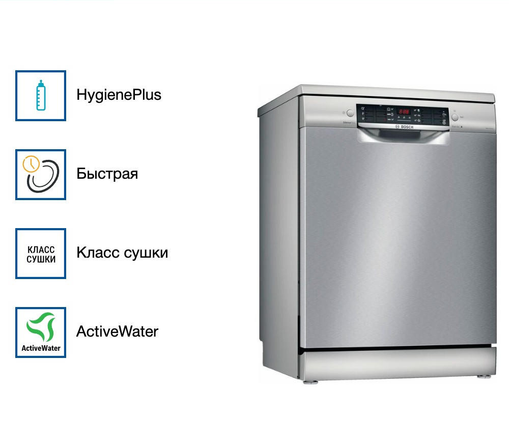 Посудомоечная машина Bosch SMS46MI20M выполнена в цвете «нержавеющая сталь» и вмещает в себя до 14 комплектов посуды. Датчик AquaSensor определяет уровень мутности воды и в зависимости от этого регулирует ее количество, что способствует более экономному расходу ресурсов. Покрытие против отпечатков пальцев поможет без труда содержать прибор в чистоте.