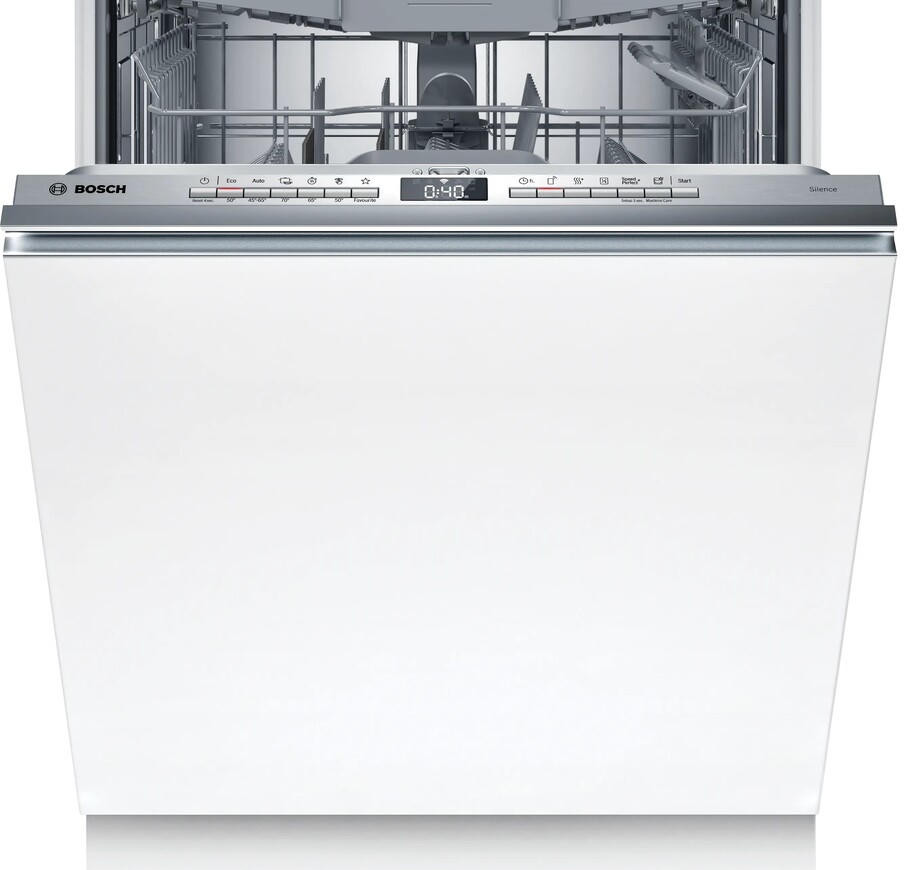 Посудомоечная машина Bosch SMV4HVX14E полностью соответствует современным требованиям к интерьеру кухни: полноразмерная конструкция продумана для удобного размещения в нише высотой 81,5–87,5 см и шириной 50 см, при глубине 55 см. Передняя панель управления выполнена из нержавеющей стали, отличается скрытым исполнением элементов, что обеспечивает минималистичный внешний вид и простоту интеграции под мебельные фасады; дисплей и сенсорные индикаторы аккуратно встроены, а кнопочные органы управления располагаются удобно, интуитивно и надёжно.