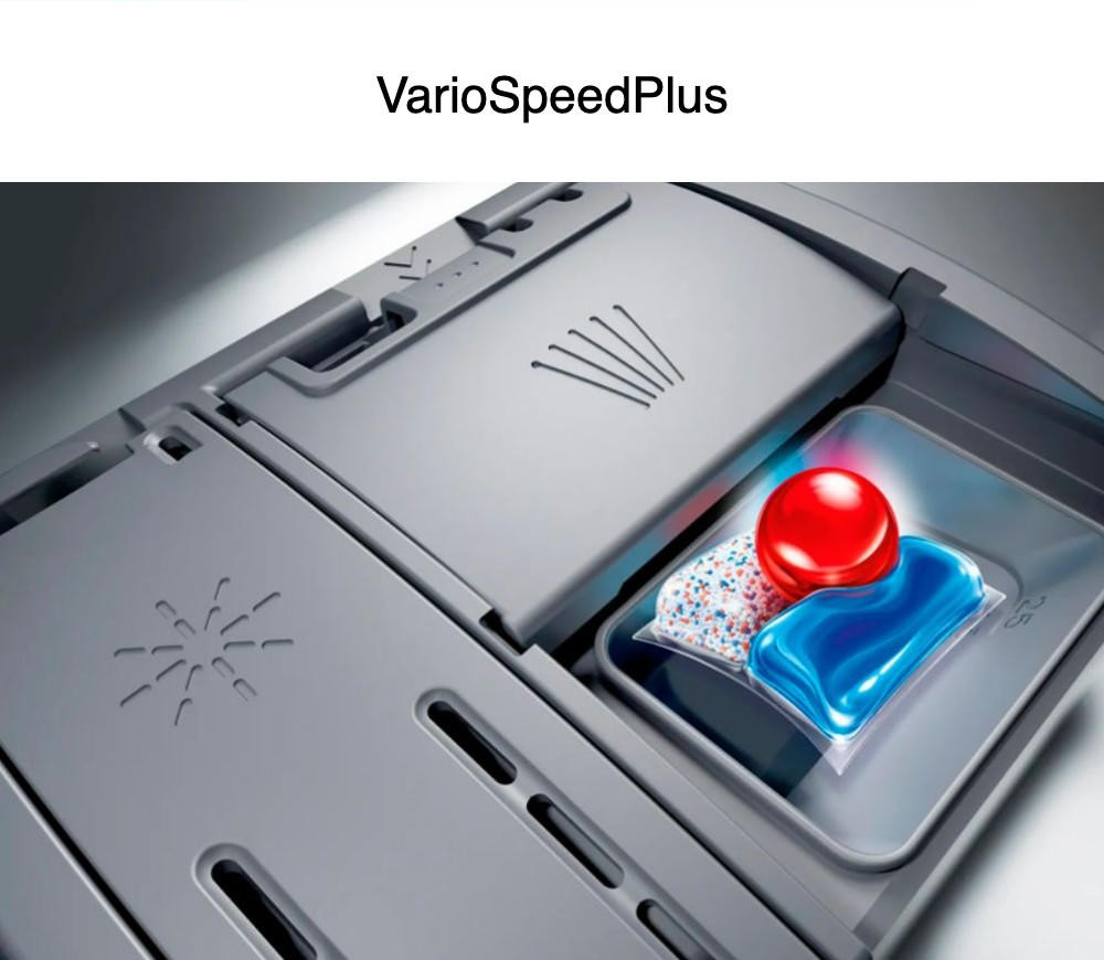 Благодаря инверторному двигателю EcoSilence Drive, машина работает очень тихо, создавая уровень шума всего 48 дБ. Модель оснащена шестью стандартными программами и пятью температурными режимами, включая быструю, экономичную, интенсивную, деликатную и предварительное ополаскивание. Дополнительная функция HygienePlus гарантирует гигиеническую чистоту посуды, а VarioSpeedPlus значительно сокращает время мойки. Посудомоечная машина оснащена удобной открытой панелью управления с сенсорными кнопками и дисплеем.