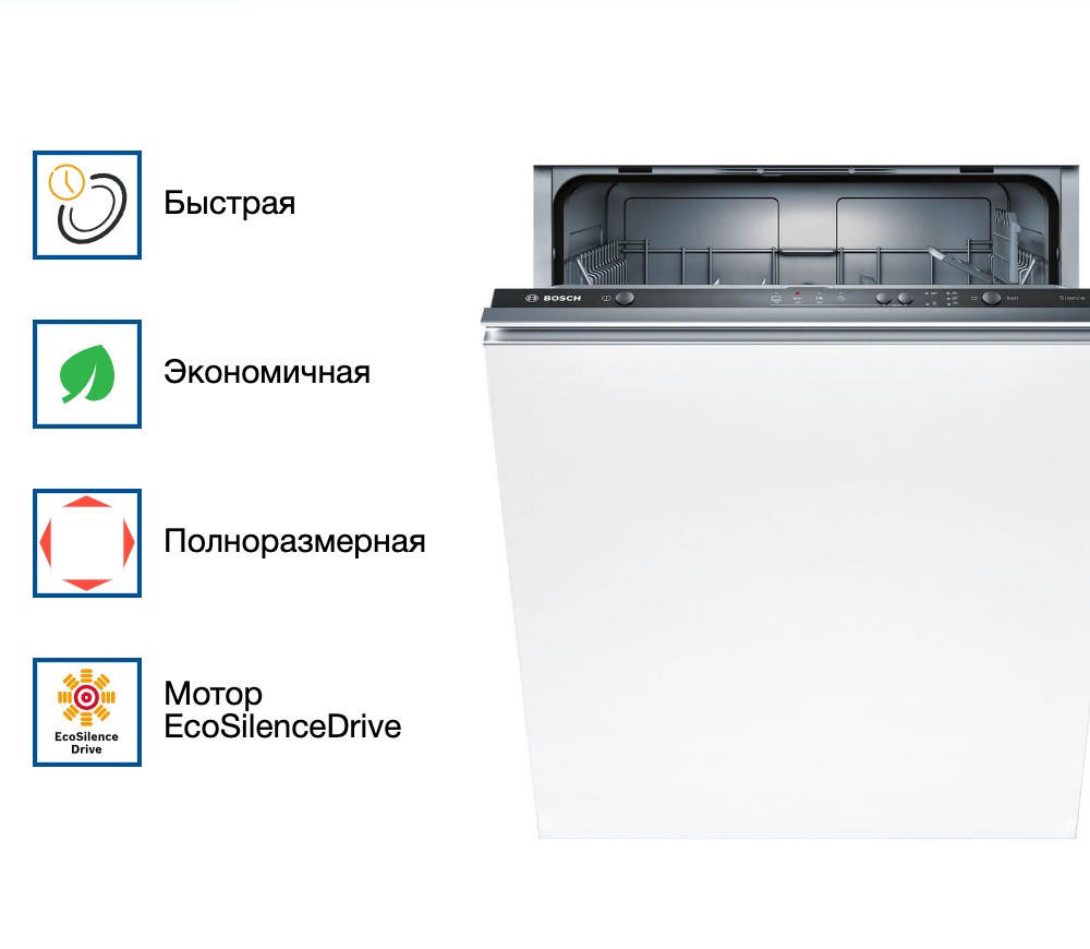 Встраиваемая посудомоечная машина Bosch SMV24AX00E — это превосходный выбор для современного дома. Стильный черный цвет панели управления идеально вписывается в любой интерьер кухни, а компактные размеры позволяют установить технику даже в небольшой нише.