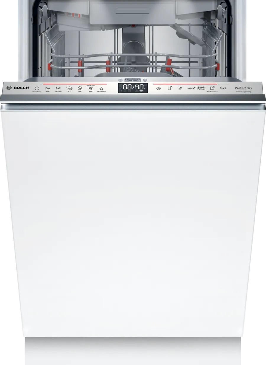 Встраиваемая посудомоечная машина Bosch SPV8ZMX06Q обладает сдержанными линиями и панелью из нержавеющей стали, которая гармонично встраивается в мебельный гарнитур и придаёт кухонному пространству аккуратный, современный вид. Узкая конструкция рассчитана на ограниченное пространство, при этом сохраняет функциональную вместимость на десять стандартных комплектов, что делает модель отличным решением для малых и средних семей. Внутренняя камера выполнена из сочетания нержавеющей стали и прочного пластика, обеспечивая долговечность при интенсивной эксплуатации; производитель подтверждает защиту от сквозной коррозии сроком в десять лет, а стандартная гарантия составляется двенадцать месяцев.