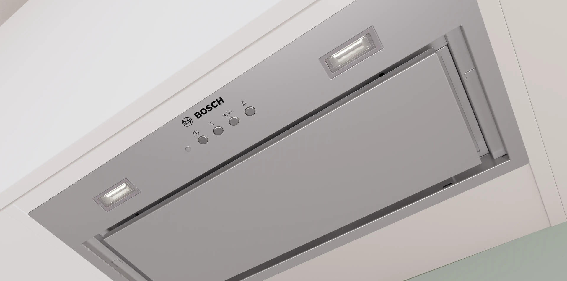 Вытяжка Bosch DLN56AC50 из серии Serie 6 сочетает продуманный облик и техническую содержательность, идеально вписываясь в современную кухонную среду. Корпус и декоративные элементы, включая фурнитуру и дымоход, выполнены из нержавеющей стали, что обеспечивает долгую службу, устойчивость к коррозии и минимальную заметность отпечатков. Габариты модели (высота 34.5 см, ширина 52 см, глубина 28.2 см) соответствуют стандартным нишам для встраивания размером 34.5 х 49.6 х 26.4 см, поэтому устройство удобно монтируется в подвесной шкаф без изменения обстановки.