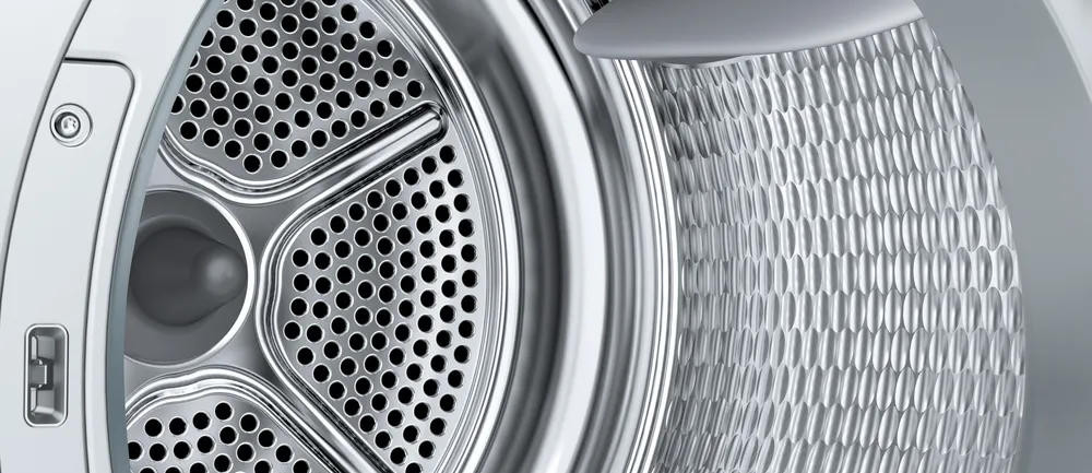 Сушильная машина Bosch WQK25200ME в классическом белом исполнении раскрывает продуманную эстетику и практичность, характерные для серии Serie | 6: строгие линии фасада сочетаются с мягкими деталями панели управления, а продуманная эргономика обеспечивает удобство размещения отдельно стоящего прибора. Компактные габариты — высота 84.2 см, ширина 59.8 см, глубина 64.8 см — позволяют легко интегрировать устройство в стандартную нишу или поставить у наружной стены, при этом конструкция с боковыми панелями AntiVibration снижает вибрацию и шум, делая работу менее заметной в жилых помещениях. Правая навеска дверцы обеспечивает комфортный доступ к барабану, внутри которого установлен нержавеющий барабан: мягкая поверхность и особая форма обеспечивают деликатную обработку ткани, препятствуют спутыванию и механическим повреждениям волокон.