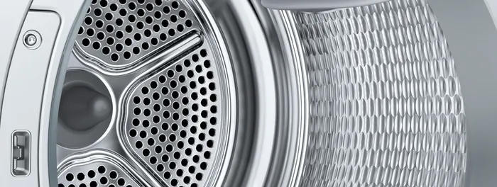 По принципу работы это конденсационная сушильная машина с тепловым насосом, рассчитанная на бережную обработку белья при пониженных температурах. Максимальная загрузка барабана достигает 9 кг, что подходит для больших семей и объёмных стирок. Барабан из нержавеющей стали имеет увеличенный объём и рассчитан на длительную эксплуатацию без потери рабочих характеристик.